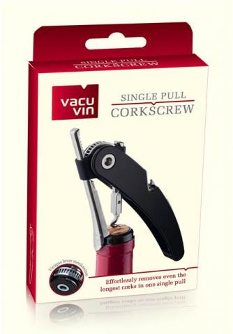 Desfacatorul Vacu Vin Single Pull extrage cu usirinta toate dopurile din sticle printr-o miscare uniforma, lina si perfect verticala. Se poate utiliza si pentru desfacerea capselor de bere. Este prevazut si cu sistem cutter foil. Este recomandat atat pentru profesionisti dar si pentru iubitorii de vin, are dimensiunea ideala "pocket size". Pentru a vedea cum functioneaza aici
